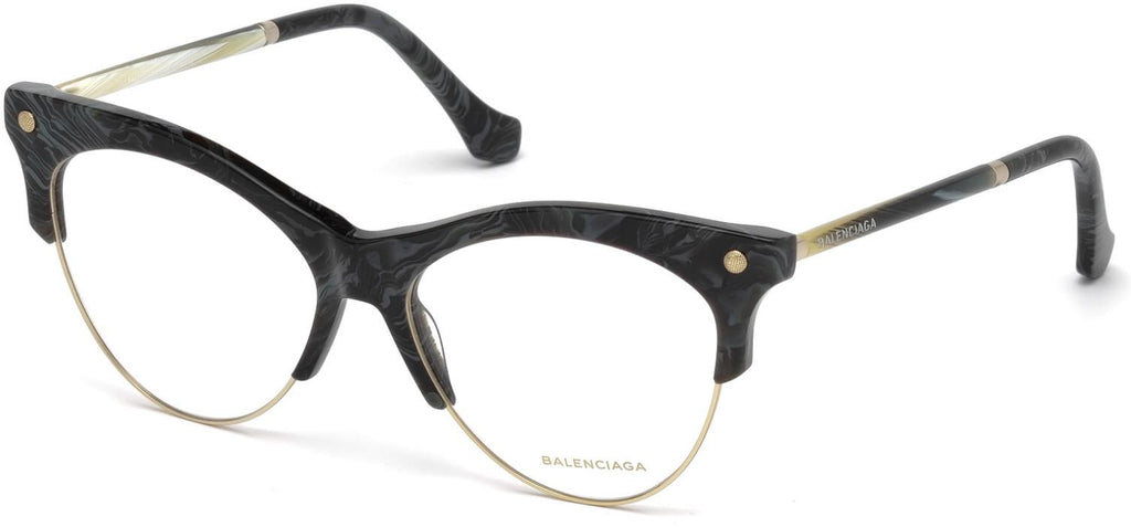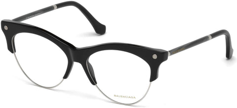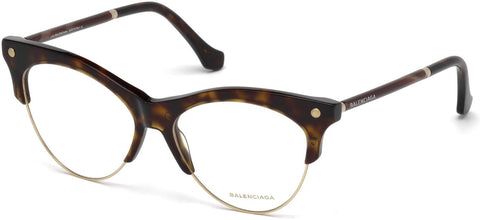 BALENCIAGA 5053 Eyeglasses made by Balenciaga are Women's Eyeglasses. They have a Cat Eye shape, and come in 4 colors, which are Black Horn, Coloured Havana, Dark Havana, and Shiny Black with size 5315-140.