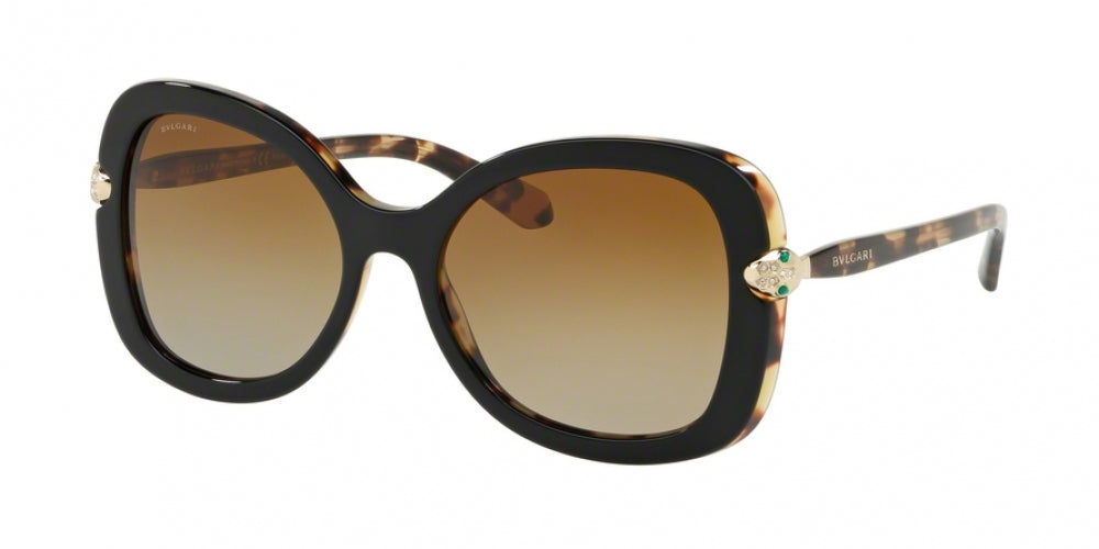 Bvlgari 8202B Sunglasses made by Bvlgari are Women's Sunglasses. They have a Butterfly shape, and come in 3 colors, which are Black, Light Brown, and Purple/reddish with size 5418-145.