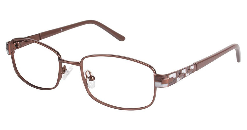 C by L'Amy CYCBL521 Eyeglasses made by C by L'Amy are Women's Eyeglasses. They have a Rectangle shape, and come in 2 colors, which are Brown / Brown and Gold/pearl with size 5017-125.