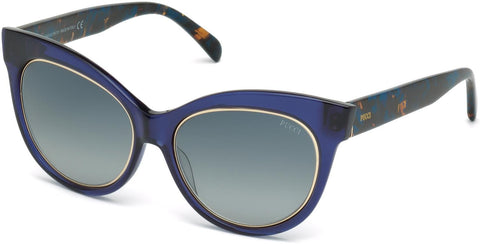 EMILIO PUCCI 0024 Sunglasses made by Emilio Pucci are Women's Sunglasses. They have a Cat Eye shape, and come in 4 colors, which are Black, Havana, Shiny Blue, and Shiny Fuxia with size 5517-140.