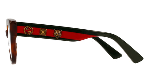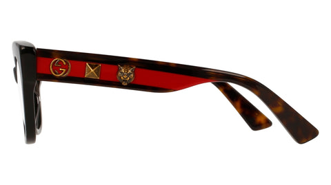 Retr? cat ewye shape for this special edition developed with handmade dedicated acetate lamination treatment on the temple. Three iconic symbols: GG, STUD and TIGER applied on both temples, to further enrich the exclusivity of the product. Wide color palette with both classic best selling colors as well as bi-layer acetates, personalized by the print of most recognizable and iconic Gucci printing: Chevron and Erbarium.