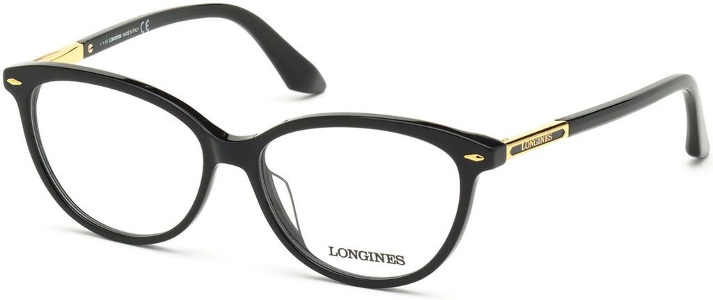 LONGINES 5013H Eyeglasses made by LONGINES are Women's Eyeglasses. They have a Cat Eye shape, and come in 3 colors, which are Shiny Black, Shiny Endura Gold & Shiny Black, Shiny Classic Havana, Shiny Endura Gold & Shiny White, and Shiny Soft Pink Havana, Shiny Rose Gold & Blue with size 0014-140.
