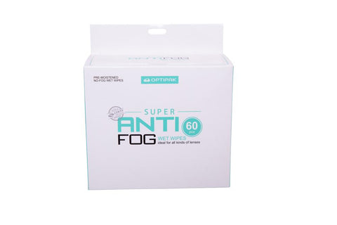 60 count box with individually packed pre-moistened anti-fog wipes - ideal for all types of lenses, including multi-coated lenses Wipes are attached by two and are perforated together. Contains isopropylic alcohol.