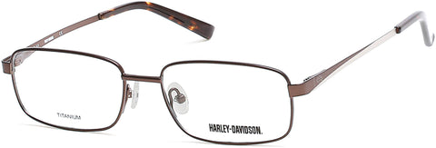 HARLEY-DAVIDSON 0747 Eyeglasses made by Harley-Davidson are Men's Eyeglasses. They have a Rectangle shape, and come in 3 colors, which are Matte Black, Matte Dark Brown, and Matte Gunmetal with size 5417-140.
