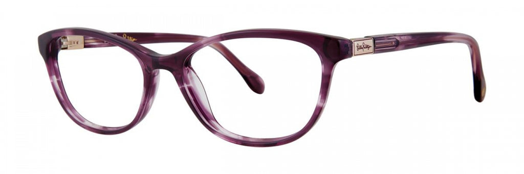 Lilly Pulitzer Foster Eyeglasses made by Lilly Pulitzer are Women's Eyeglasses. They have a Cat Eye shape, and come in 3 colors, which are Purple, Teal, and Tortoise with size 5116.00-135.