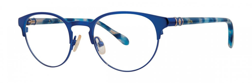 Lilly Pulitzer Hani Eyeglasses made by Lilly Pulitzer are Women's Eyeglasses. They have an Oval shape, and come in 3 colors, which are Aqua, Navy, and Pink with size 4518.00-125.