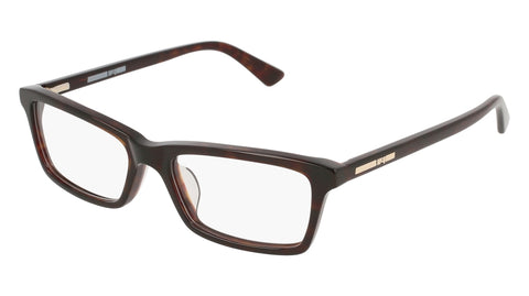 McQ MQ0113OP Eyeglasses made by McQueen are Women's Eyeglasses. They have a Rectangle shape, and come in 2 colors, which are Black and Havana with size 5217-140.