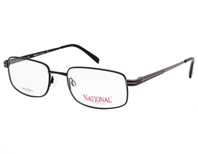 NATIONAL 0322 Eyeglasses made by NATIONAL are Men's Eyeglasses. They come in 3 colors, which are Matte Black, Shiny Dark Brown, and Shiny Gumetal with 2 sizes, which are 5519-140 and 5719-145.