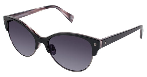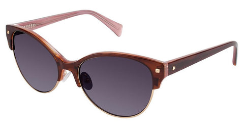 Nicole Miller NMVERDI Sunglasses made by Nicole Miller are Women's Sunglasses. They come in 3 colors, which are Black/sand Dune, Brown Horn/pink, and Purple / Horn with size 5516-135.