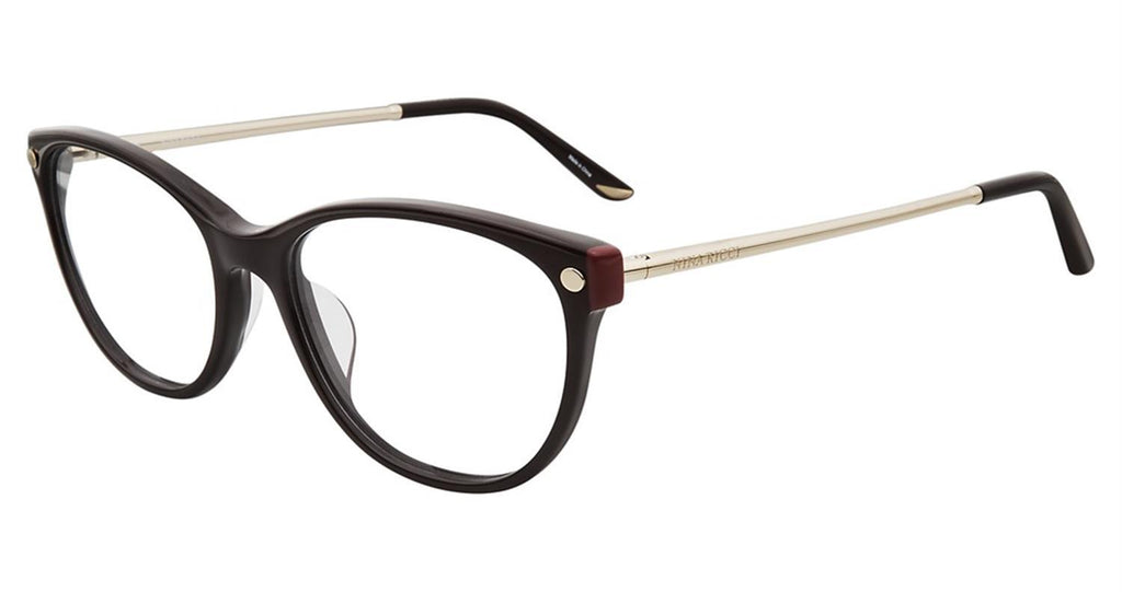 Nina Ricci VNR132 made by Nina Ricci are Women's Eyeglasses. They have a Cat Eye shape, and come in 3 colors, which are Black 0700, Burgundy 0G96, and Taupe 0913 with size 5317-140.