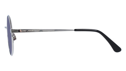 unisex round shape. zero-base lenses. vintage flat metal profiles. flexible bronze temples. 3D laser-engraved corner angle. very light structure. temple tips o provide additional comfort and fit. barberini mineral lenses on premium skus. Saint Laurent engraved by laser on the external part of both temples.
