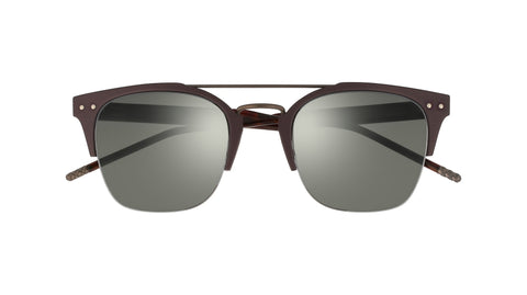 Squared double bridge half rimmed style. Man FW 17 Fashion Show style Contemporary style, given by the particular designed shape and the end pieces The style is in Aluminum, showing the iconic Bottega Veneta both aesthetical and functional rivets both on the front side and on the temples The beryllium copper end tips are engraved with the iconic intrecciato motif, representing the distinctive element of this family This style is available in five colors